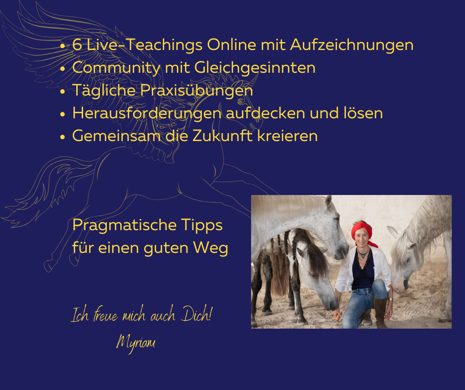 **Tägliche Begleitung in der Telegrammgruppe mit Myriam und den Pferden. Alle Teachings werden aufgezeichnet.**